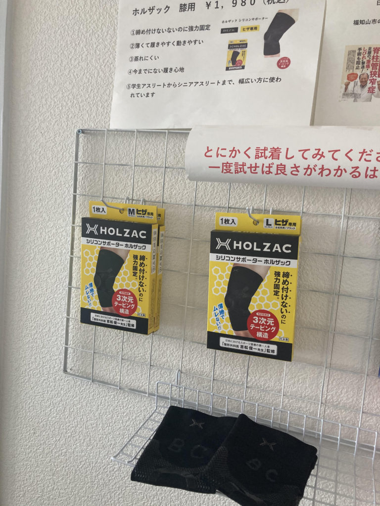 膝用のサポーターの試着と販売コーナーを設置致しました!