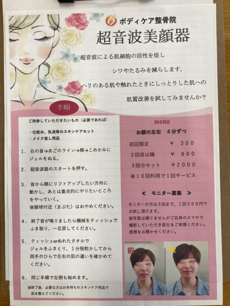 自費メニューに超音波美顔器を取り入れました。