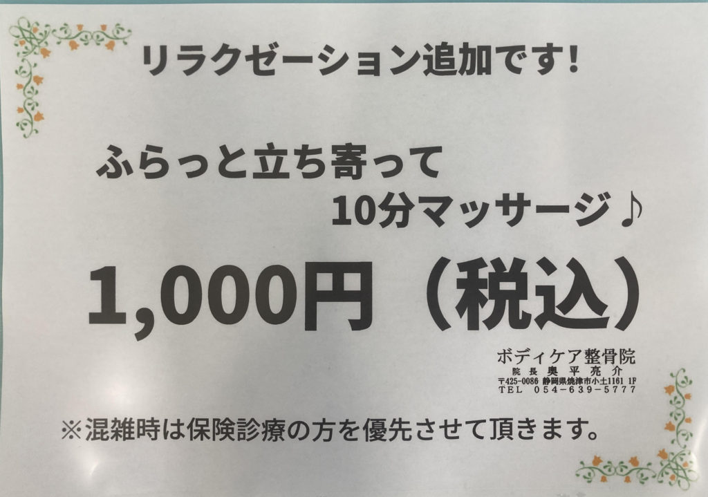 ボディケア整骨院BLOG ボディケア整骨院からのお知らせです