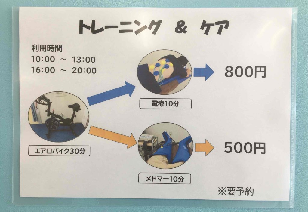 ・エアロバイク30分 → 電療10分 800円