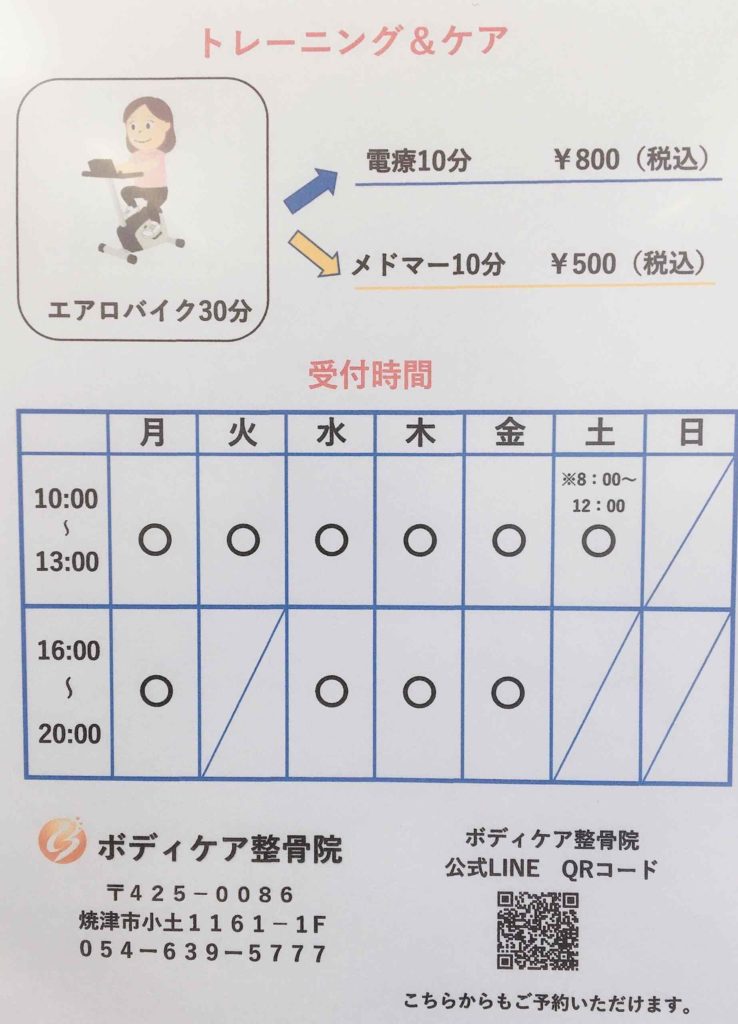 こんにちは。ボディケア整骨院、受付の松浦です。