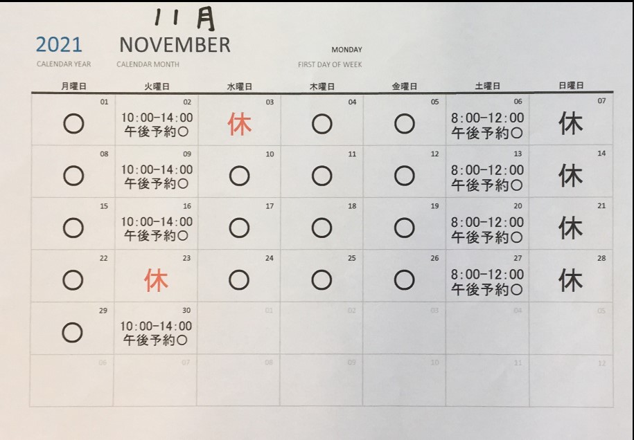 11月の受付時間をお知らせします。