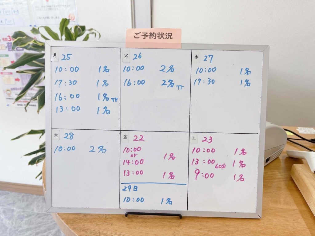 来週のご予約状況をお知らせいたします。