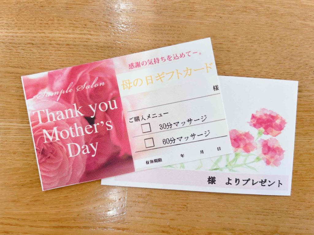 5月8日は母の日ですね。ボディケア整骨院では『母の日ギフトカード』を販売中です。