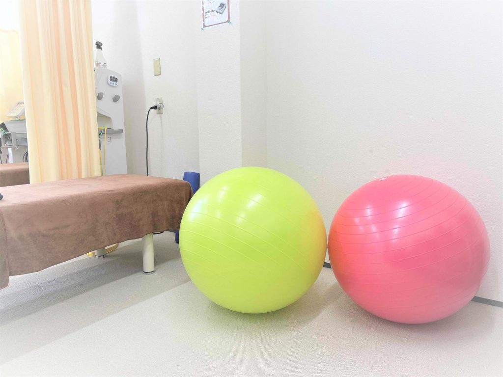 バランスボールは、当院でトレーニングをしていただく際に楽しく健康な身体作りができるよう取り入れました。