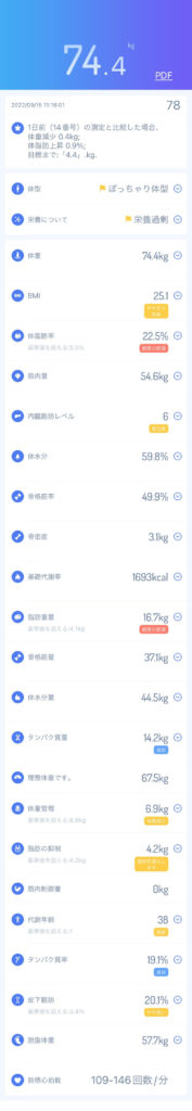 初日75.3kg→4日目74.4kg(-0.9kg)