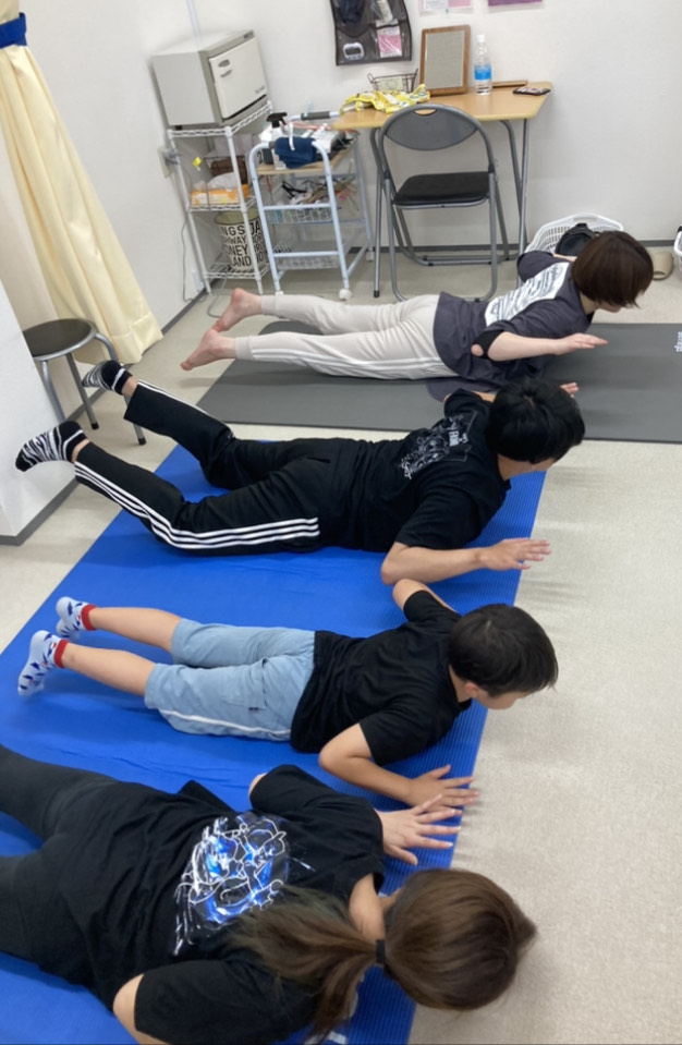 当院では「フリースペーストレーニング」といって先生とマンツーマンで行うトレーニングがあります。おひとりずつ最適なトレーニングメニューを先生が考えます。トレーニング時間は15分~20分くらいですので気軽に無理なく行えます♪
