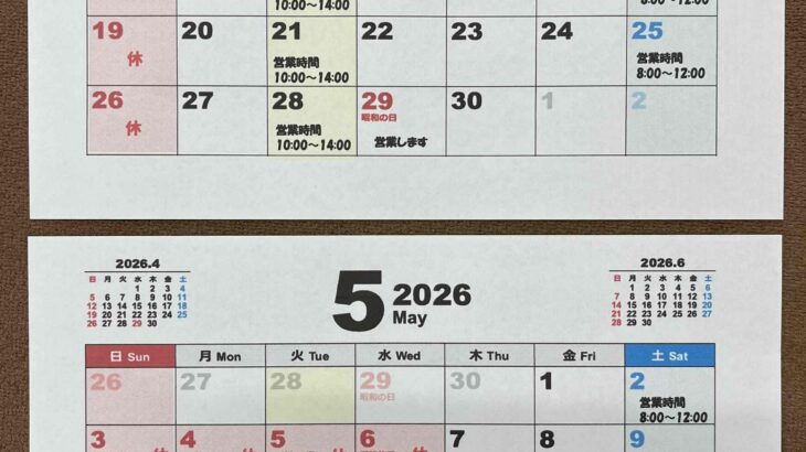 4月5月の営業カレンダー